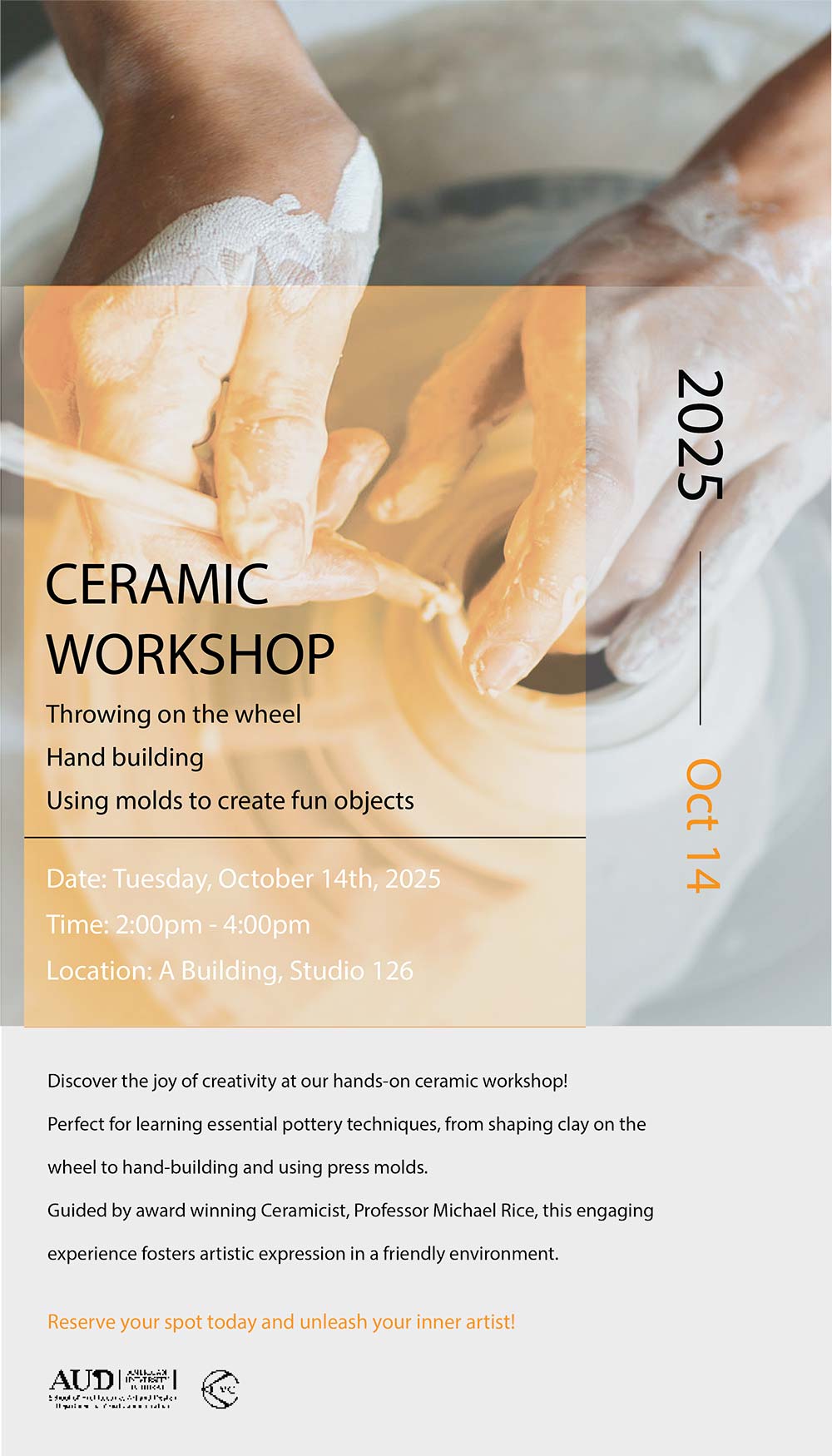Ceramic Workshop : Hands-On Clay: From Mud to Masterpiece Explore the world of ceramics through hands-on techniques. Shape, carve, and form your own unique creation while learning how raw clay transforms into artworks you can be proud of!