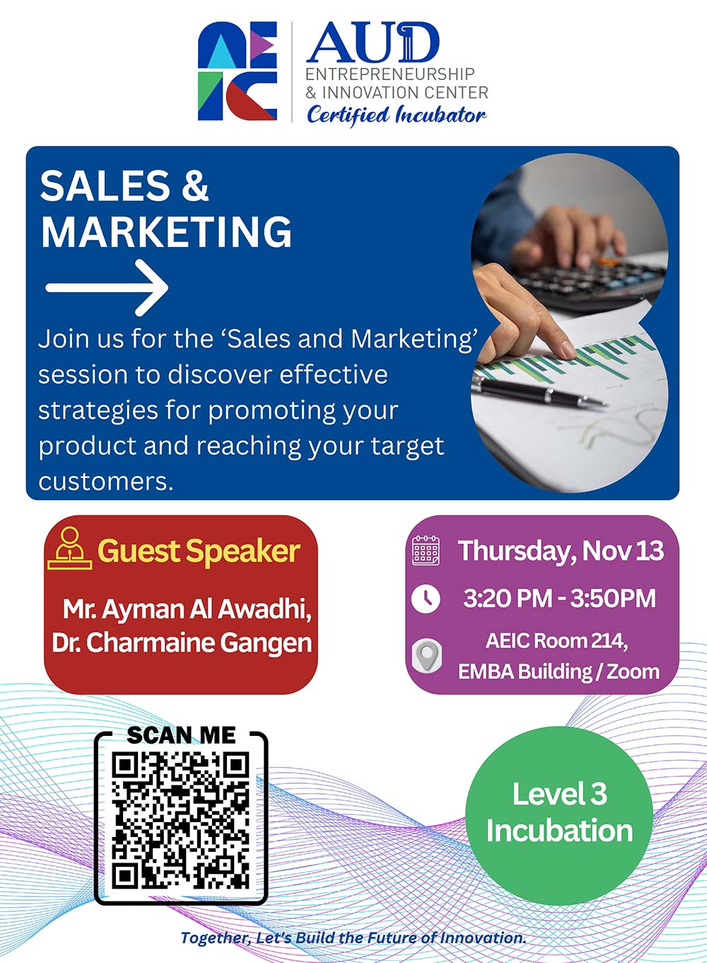 Join us for the “Sales and Marketing” session to discover effective strategies for promoting your product and reaching your target customers.